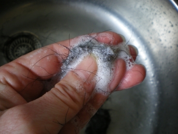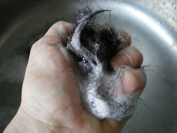 1. Haar kochend heiß überbrühen, gut spülen 2. kräftig einseifen und weich kneten 3. Filz in gewünschte Form filzen 4. trocknen lassen - fertig!
