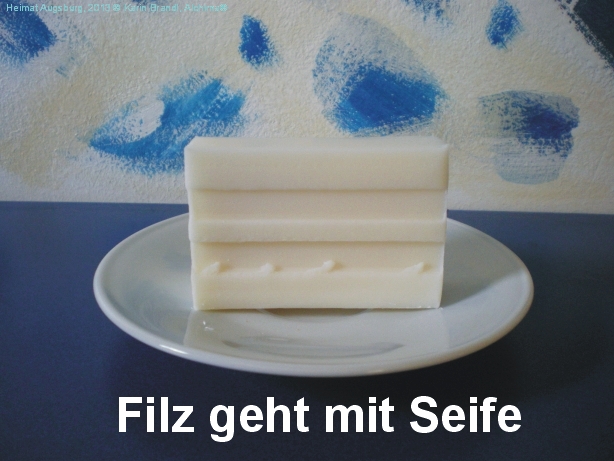 , Konzeptkunst, Sammlung ‘Heimat Augsburg’ von Karin Brandl, Mai 2013 Filz besteht aus Haar und wird mit Wasser und Seife geschmiert und geknetet, wodurch ein fester Zusammenhalt entsteht.