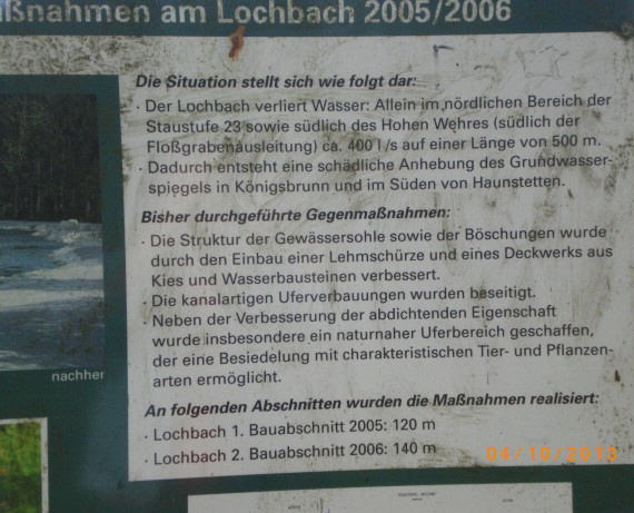 Jetzt gibt’s weniger Wasser. Nach jüngsten Presseberichten hat der Freistaat im Februar 2016 die Wasserzufuhr in den Lochbach abgesenkt.